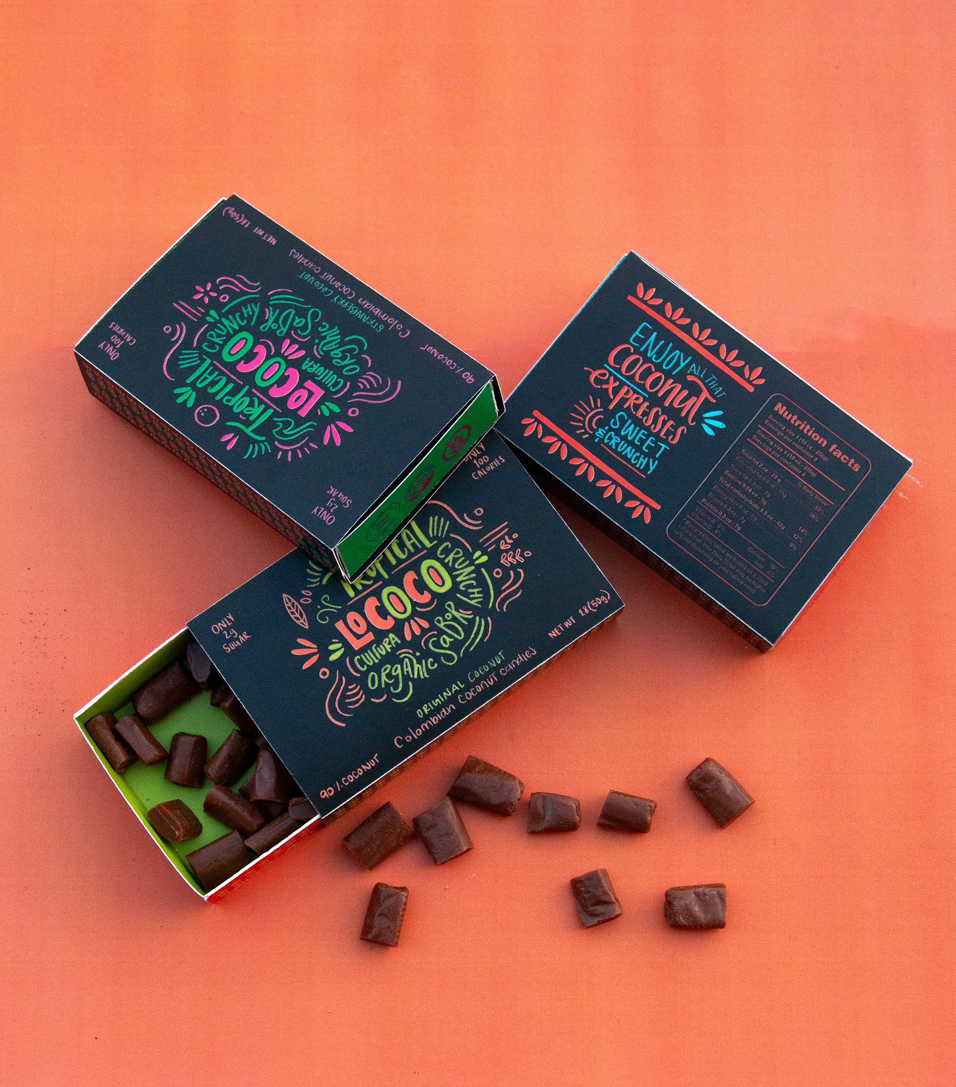 Lococo coconut candies has come out of the jungle of Colombia to change the world of candies. The playful hand-rendered branding showcases a tropical feel.