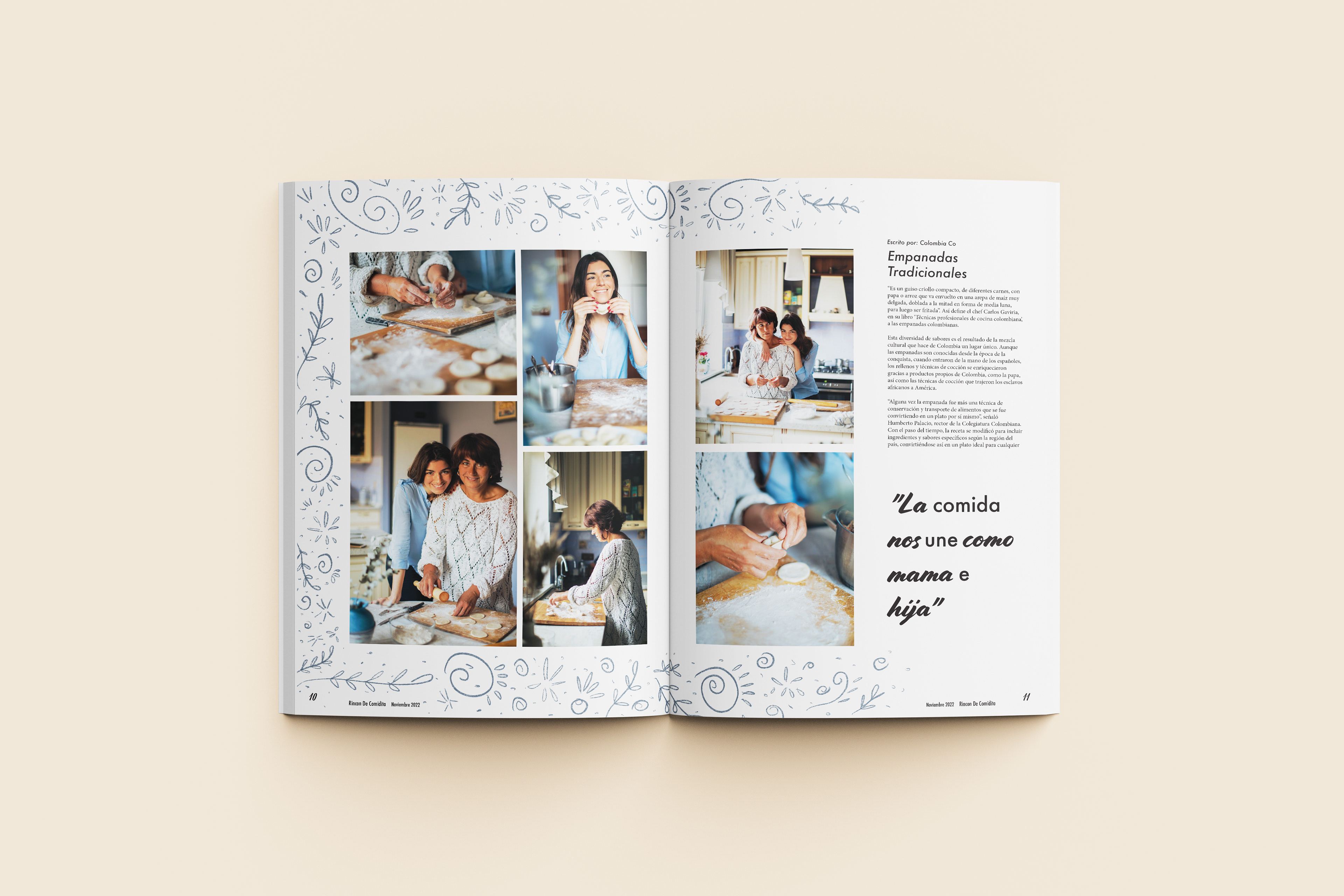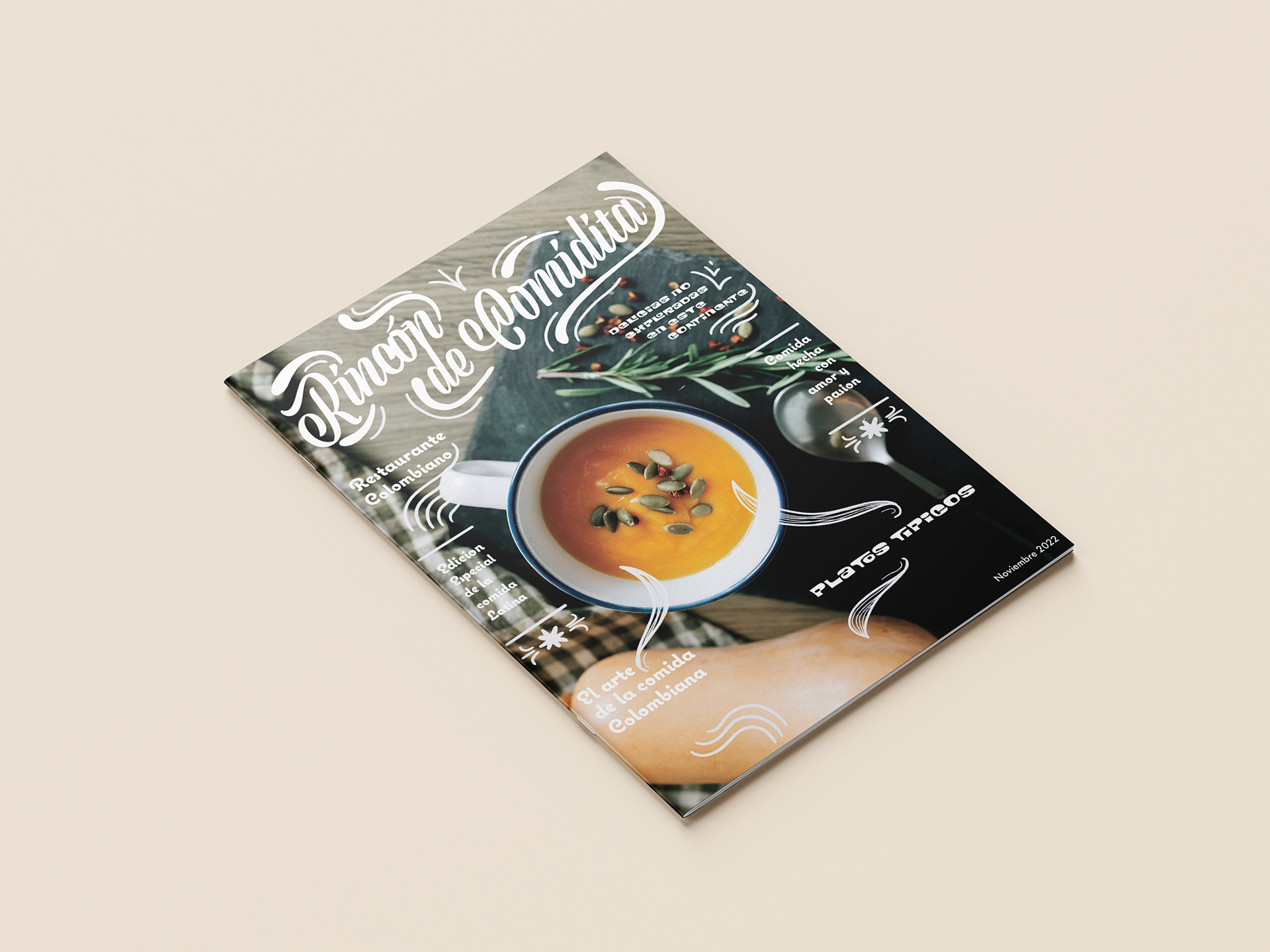 In this magazine I showcased intricate, and cultural traditional dishes from Colombia. The imagery, hand rendered type and illustrations were inspired by design styles found in South America