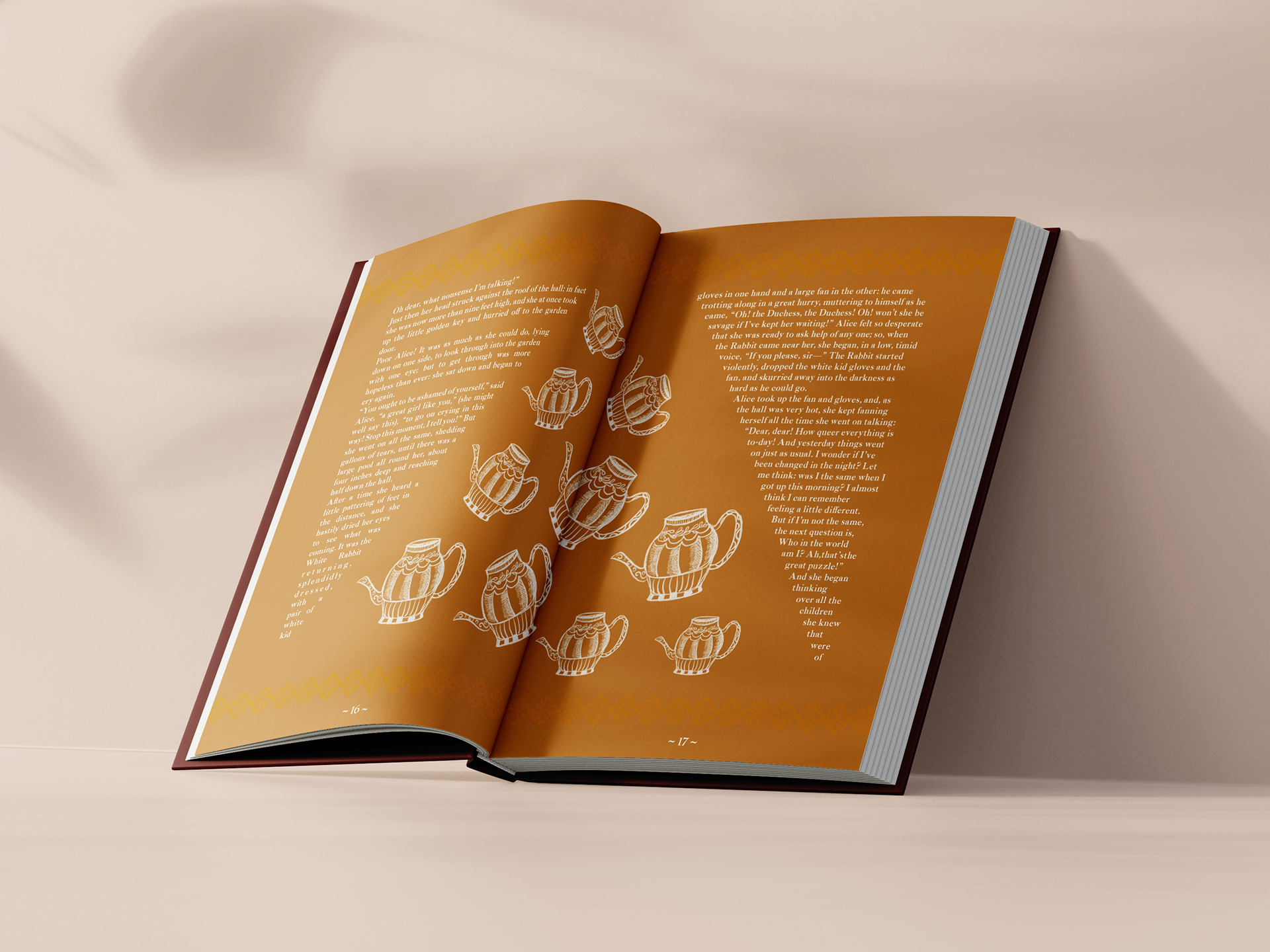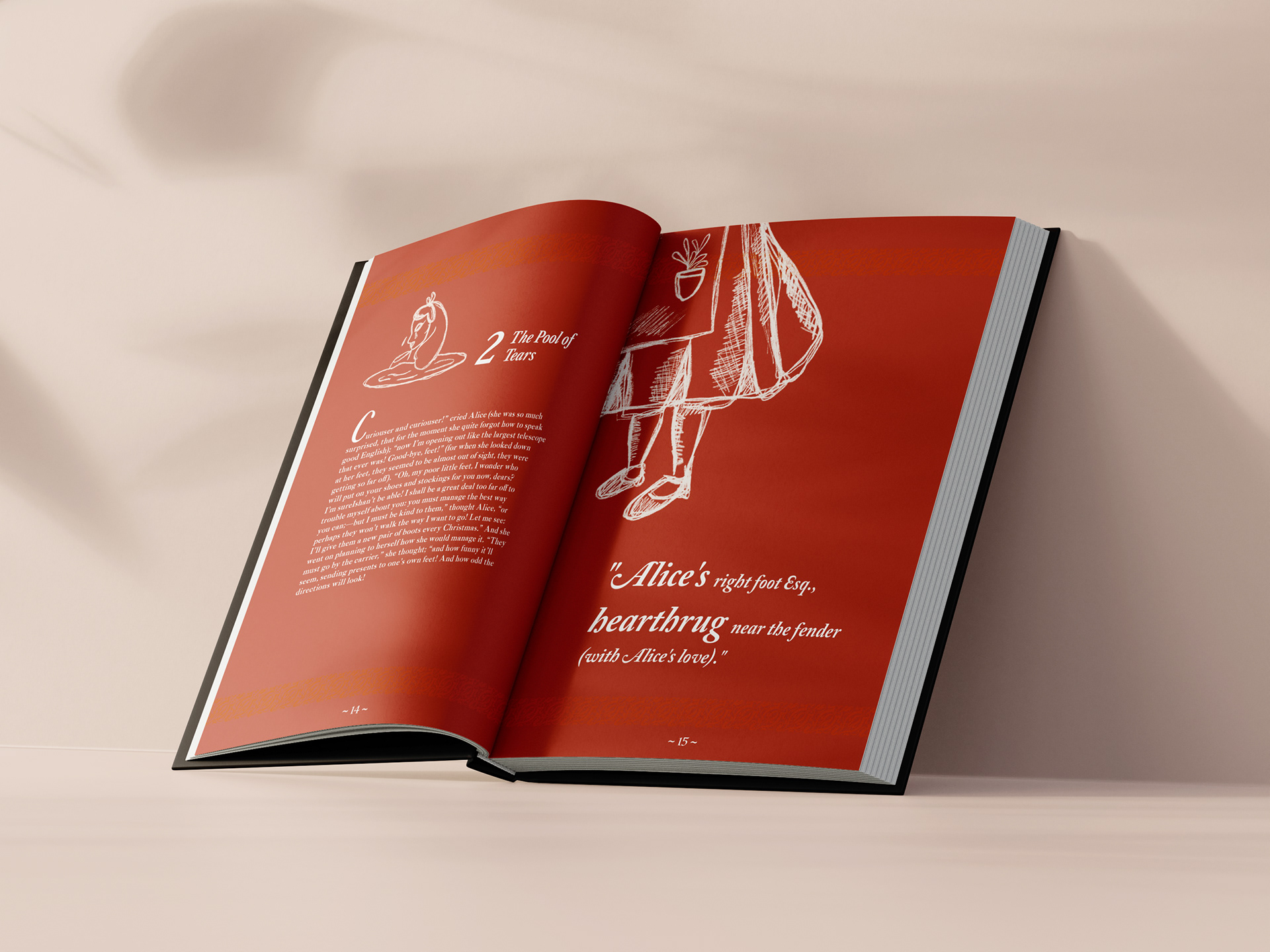 My rendition of the book cover and illustrations found throughout Alice and Wonderland. This showcases a world coming to life where type and illustrations coexist.